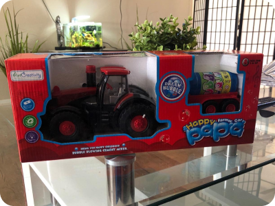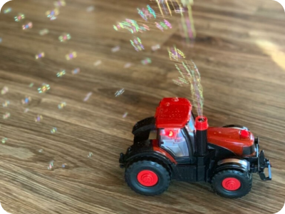 „Децата ми не могат да се наситят на BubbleTractor™! Толкова е лесен за използване и ги забавлява с часове с балончета и музика!“