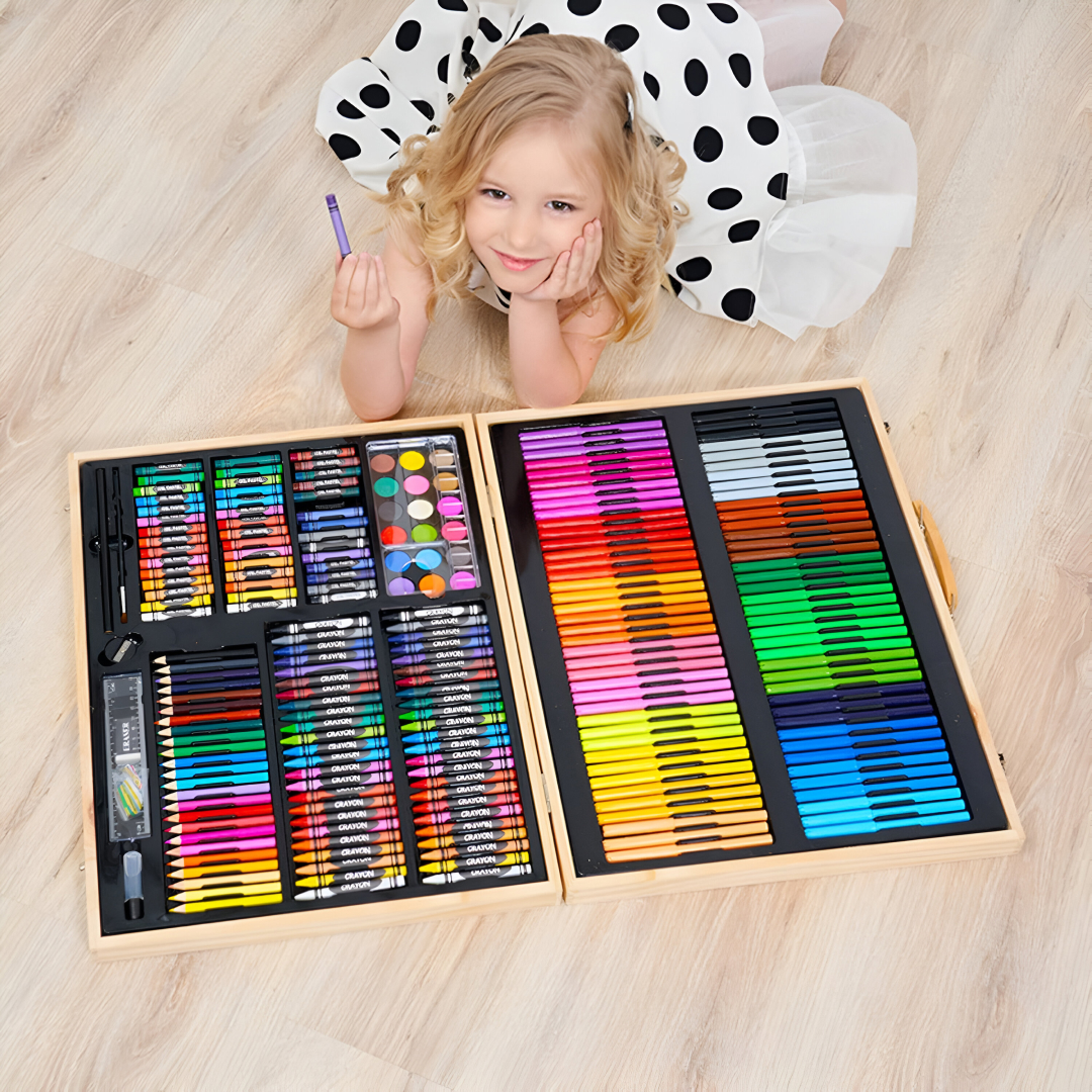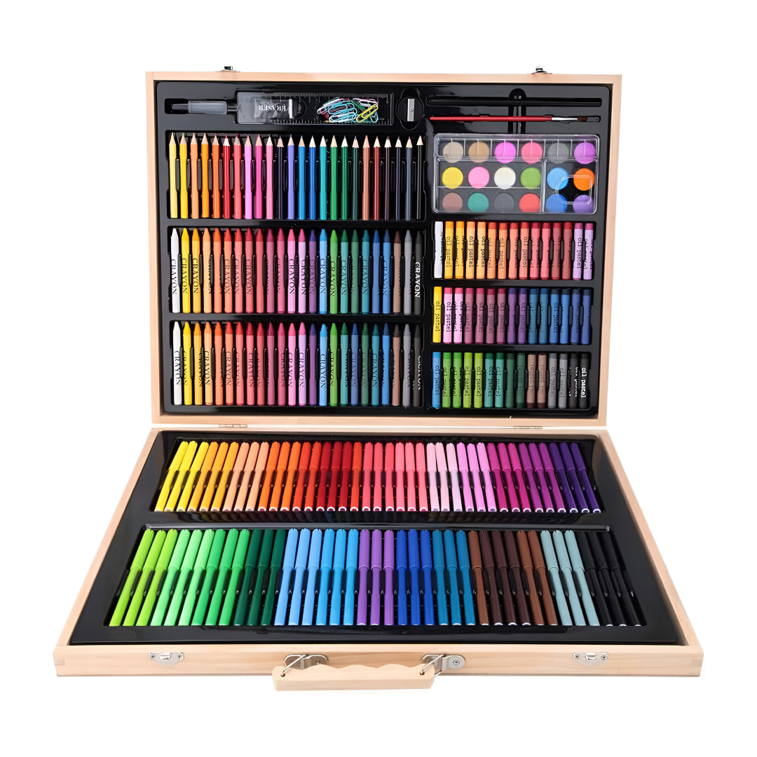 Дайте живот на въображението си с DreamArt™ Художествен комплект от 251 части, проектиран да вдъхновява креативността на всяка възраст! Перфектен за деца, студенти и възрастни, този пълен комплект съдържа всичко необходимо за рисуване, оцветяване, боядисване и създаване на прекрасни шедьоври.