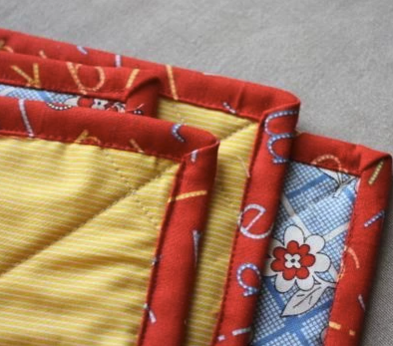 🧵 Той сгъва лентата наполовина около тъканта, след което сгъва и горния, и долния ръб на подвързията, правейки чисто покритие отгоре и отдолу.