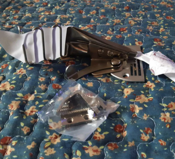 • Този инструмент за свързване се използва за вмъкване на подвързия или лента по ръба на плата. Идеален инструмент за индустриална шевна машина