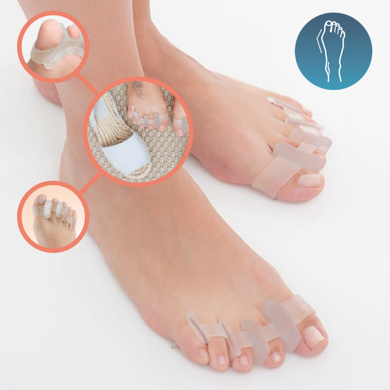 Благодарение на ергономичния си дизайн и силиконовия гел, тези практични коректори за пръсти се адаптират към формата на крака, коригират позицията на пръстите и предотвратяват припокриващите се пръсти и ожулванията. В допълнение осигуряват приятно чувство на релаксация на краката, защото противодействат и облекчават дискомфорта, причинен от халукс, извити надолу палци на крака, равни ходила, диабетични ходила, лошо кръвообръщение, израстъци по костите, фрактури на пръстите и т.н.