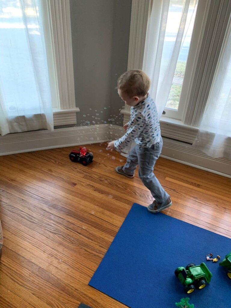Купих това като подарък за моя 2-годишен племенник, който обича балончета! Камионът изненадващо прави много малки балончета и е супер забавен подарък за по-малки деца! Едно нещо, за което трябва да внимавате, е това, че ако вашето дете го вземе или изпусне, разтворът с балончетата ще се разлее навсякъде. Освен това малко нещо, беше страхотен подарък!
