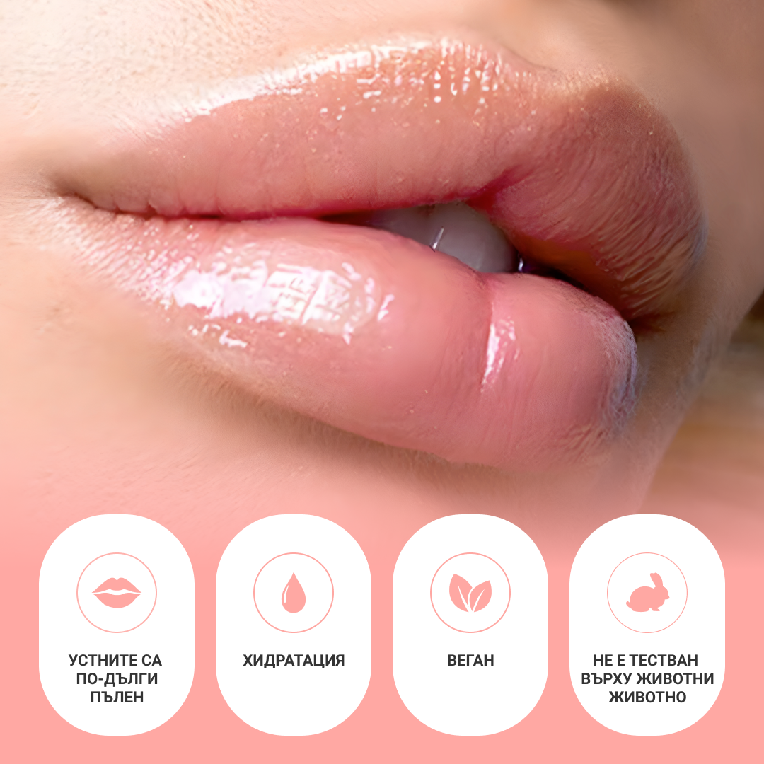 - Гланцът е богат и на витамин Е, който спира процеса на стареене на устните и ги поддържа опънати.