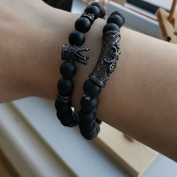 Комплектът има детайлна корона и пиедестал, детайлно изработени, за да бъдат достойните централни елементи на тези гривни.