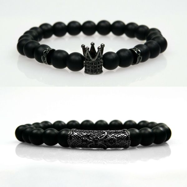 Комплектът има детайлна корона и пиедестал, детайлно изработени, за да бъдат достойните централни елементи на тези гривни.