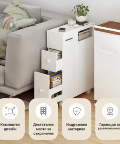 • Голямо пространство за съхранение: Разполага с чекмедже и отворени рафтове за организация.
