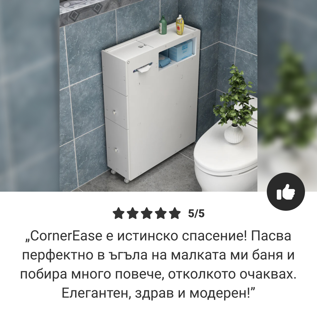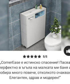 Наскоро закупих шкафа CornerEase и това е истинска промяна! Перфектно се вписва в ъгъла на моята малка баня и подрежда всичките ми тоалетни принадлежности. Горещо го препоръчвам!