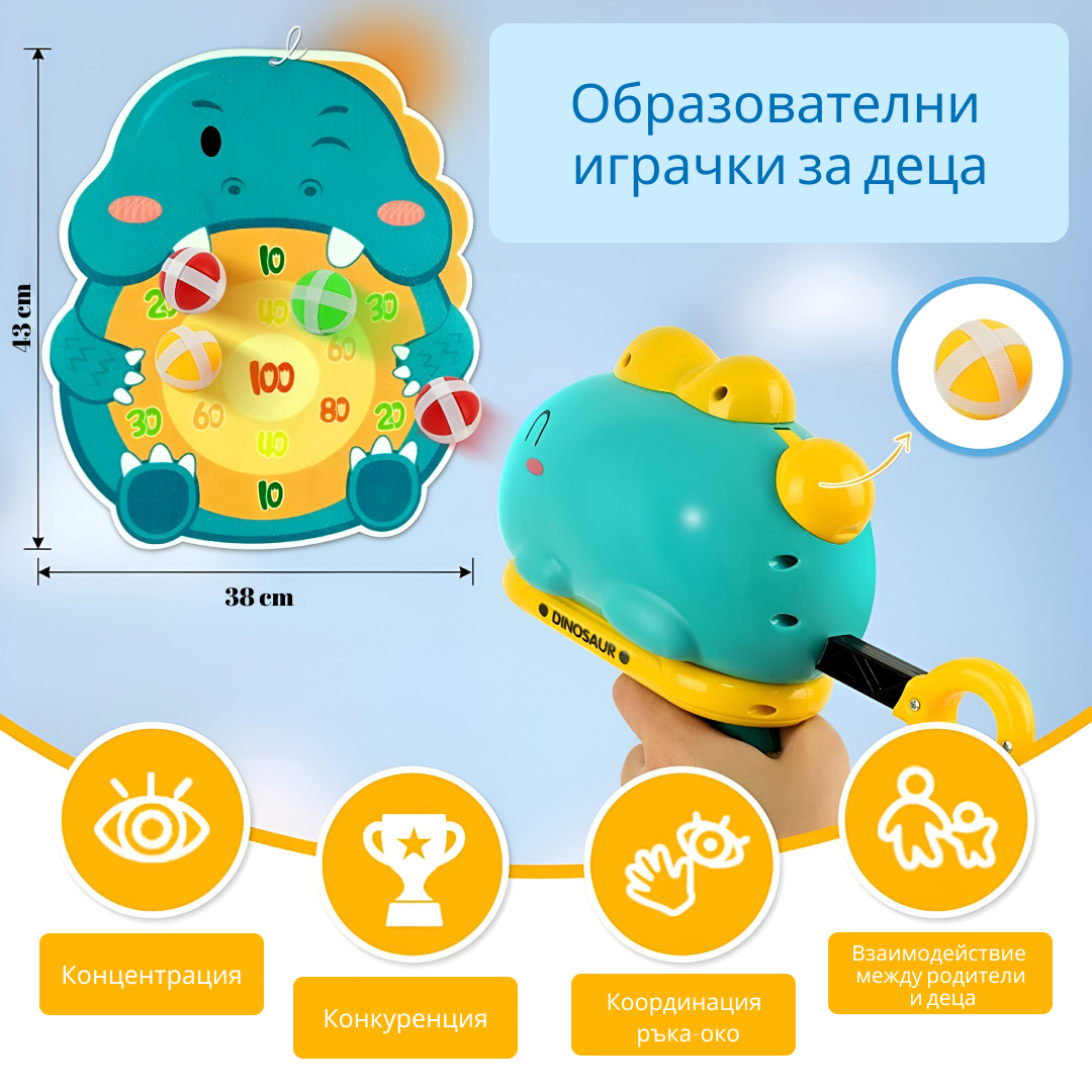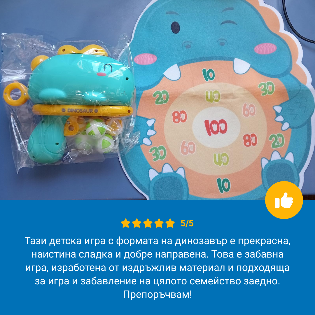 Този комплект за дартс с дино мотиви предизвиква смях и приятелска конкуренция. Най-добрият подарък!