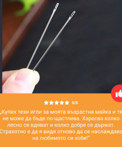 „Дъщеря ми обича да шие на ръка неща за куклите си, но тя винаги се нуждае от помощ при вдяването на конеца в иглата. Това реши проблема! Малки, лесни и издръжливи игли.