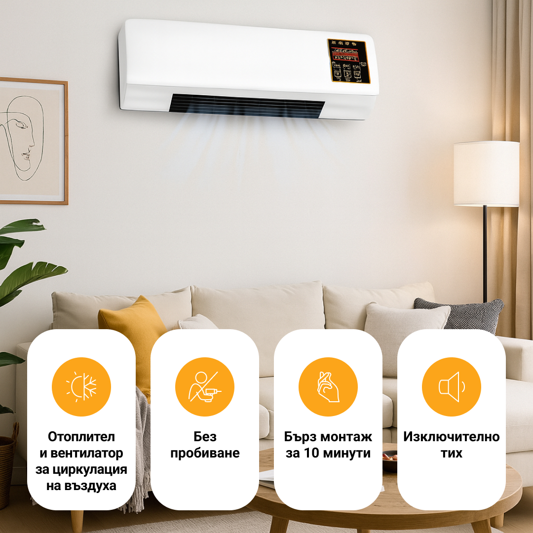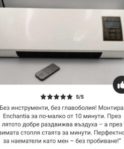 Лятна жега или зимен студ? Enchantia поддържа вашето пространство комфортно с мощно отопление и функция, която раздвижва въздуха в стаята—без пробиване, без техници, без чакане!