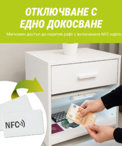 Тайната полица е защитена с NFC ключалка. Достатъчно е да доближите включената NFC карта до ключалката, за да я отворите незабавно.