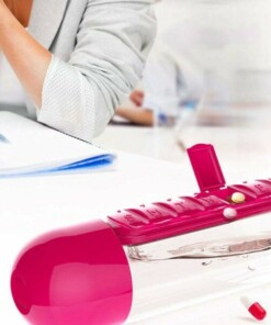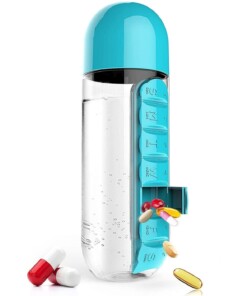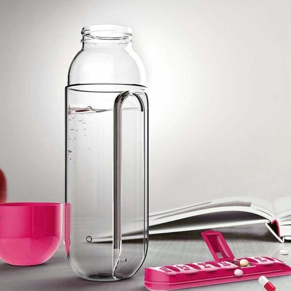 Гениален дизайн! Бутилката съдържа точното количество вода, а държачът за хапчета спасява живот. Пасва перфектно в чантата ми!