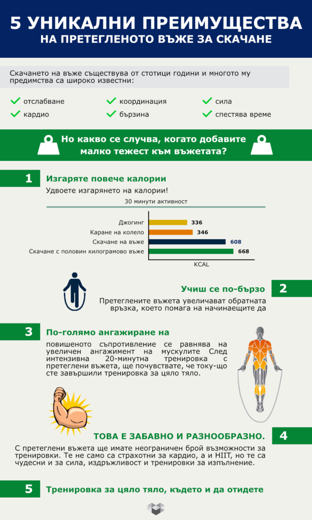 - Тренировките с висока интензивност с това претеглено въже ще ви донесат формата, която винаги сте искали за нула време.