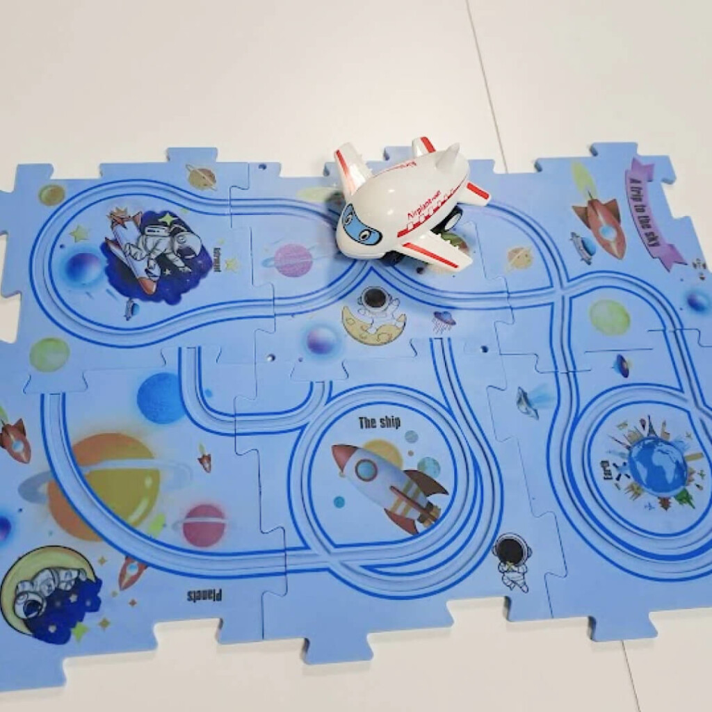 Невероятна играчка на релса, която работи като пъзел: частите могат да бъдат поставени в определен ред, за да може самолетът да следва релсата. Има различни начини за поставяне на пистата, за да се осигури разнообразие и креативност.