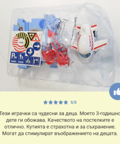 Това е фантастична играчка. Не само, че е забавно да гледаш как количката обикаля около релсите, но ми харесва фактът, че детето наистина трябва да използва своите умения за критично мислене, за да разбере как да събере частите и да създаде непрекъсната писта за количката. Препоръчвам горещо закупуването на тази играчка.