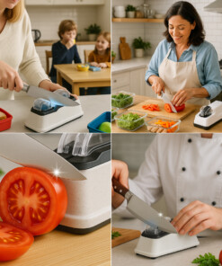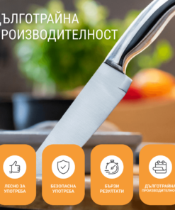 Каква промяна! Не мога да повярвам, че е толкова евтино! Ножовете ми никога не са били по-остри. Лесно за употреба, революция в кухнята!“