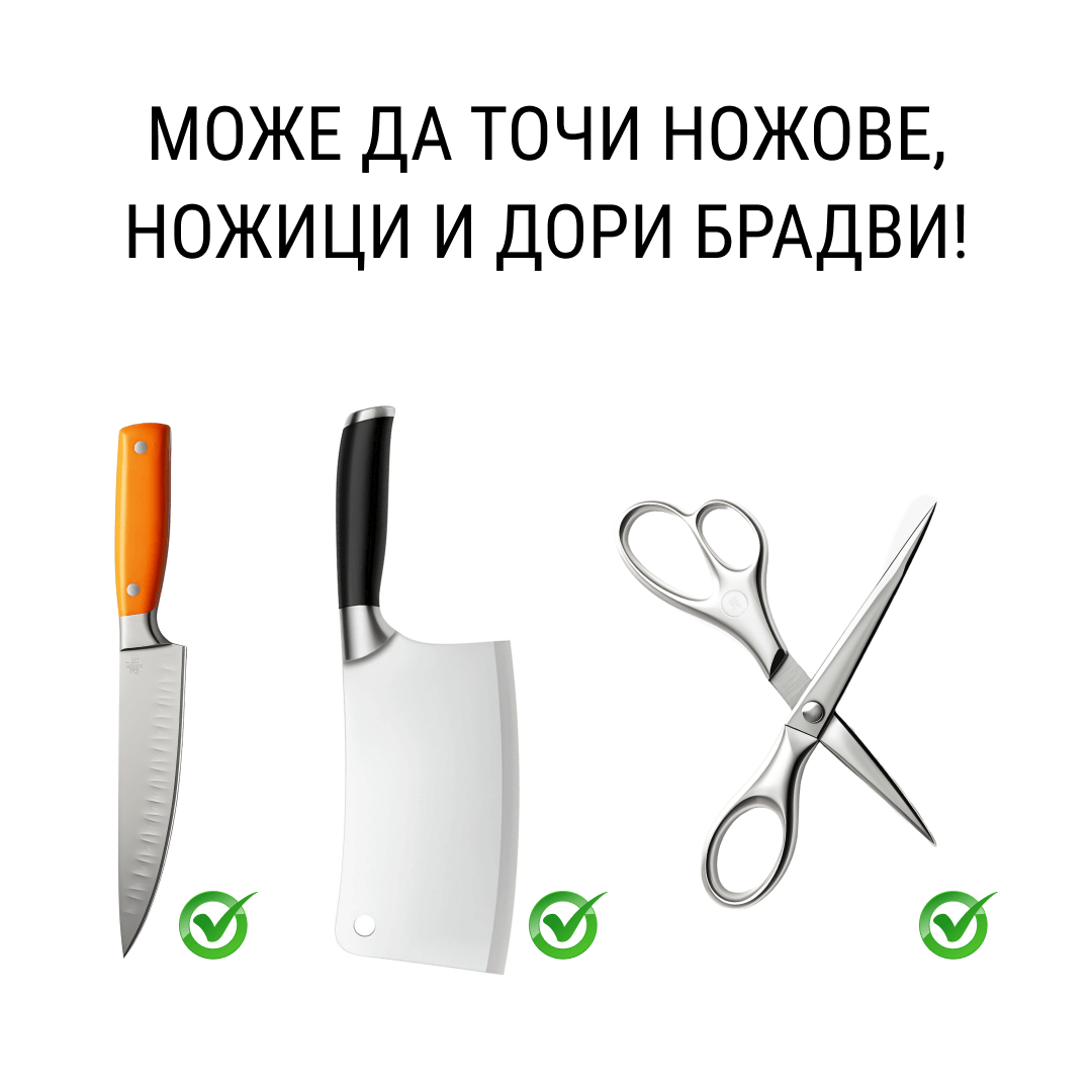 Може да подостря ножове, ножици и дори брадви!