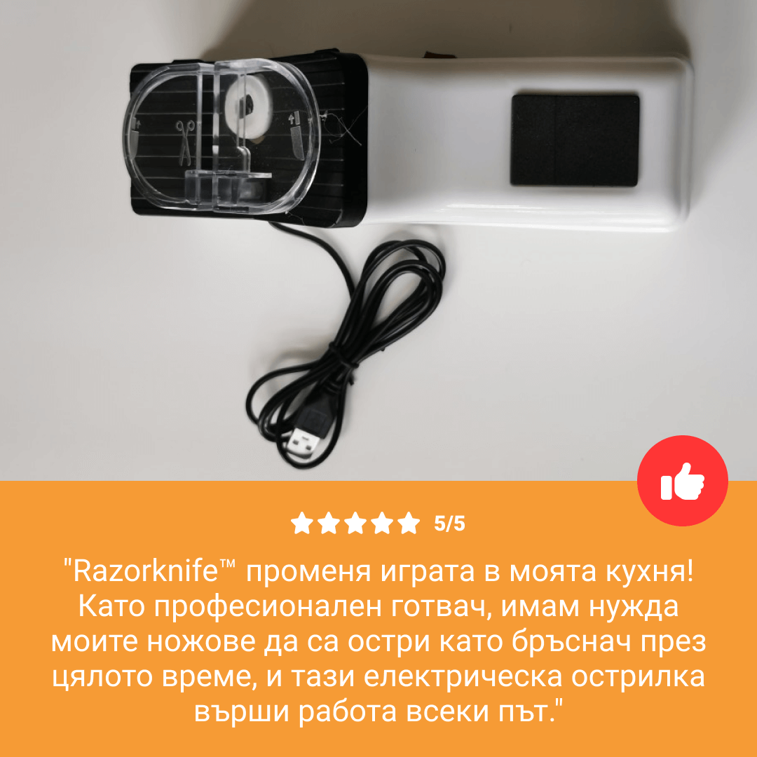 • Направете революция във вашата кухня с електрическото точило за ножове Razorknife™🔪 – сбогувайте се с тъпите остриета! 🔪