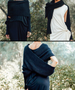 - Дизайн 2-в-1 – Превръща се мигновено от шал в удобен пуловер.