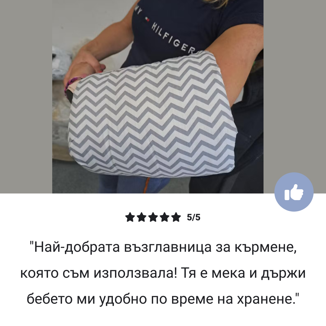 “Като нова майка, честните отзиви са от голямо значение и тази възглавница променя правилата за кърменето. Мека е и поддържа ръката ми перфектно!”