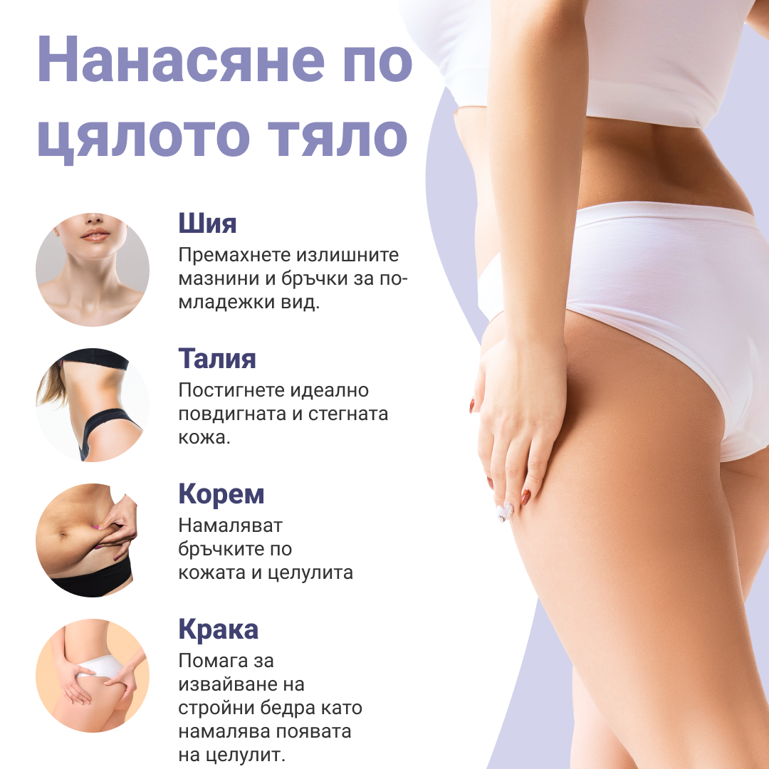- Приложение: Бедро, корем, гърди, гръб, горна част на ръцете