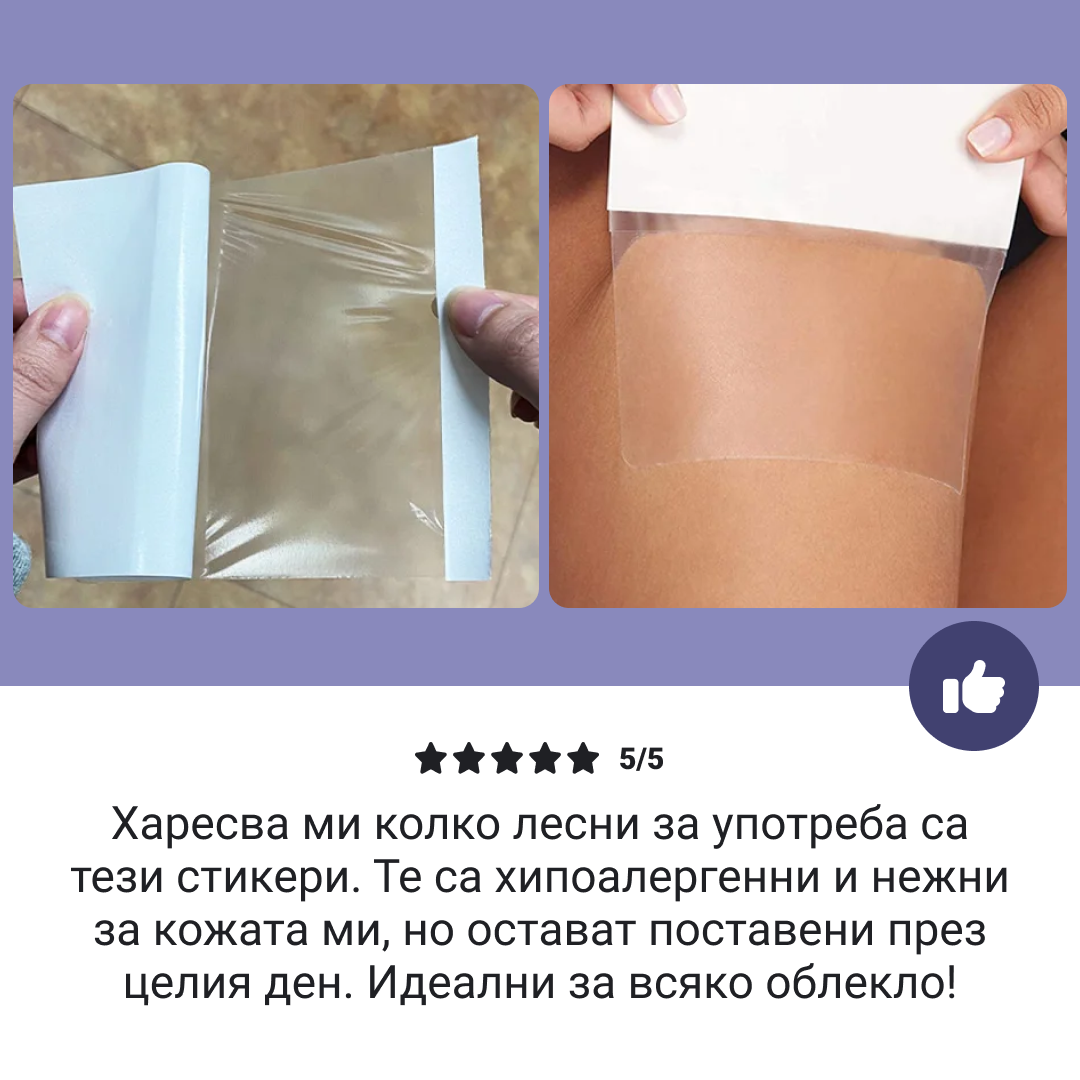 Харесва ми, че тези лепенки са напълно невидими под дрехите ми. Те осигуряват невероятна опора и оформяне без никой да знае, че ги нося. Освен това, са хипоалергенни и няма раздразнение за чувствителната ми кожа!