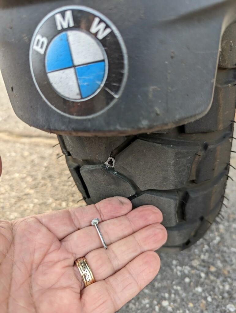 „Намерих чавка в задната гума на моето BMW 1200GS. Когато я извадих, изглеждаше като заковка и причиняваше бавно изтичане на въздух. Бях на дълго пътуване и си спомних, че бях купил тези нокти за ремонт на гуми преди няколко месеца. Имах клещи, отвертка, преносим компресор и един от по-големите нокти. Извадих чавката и въздухът започна да изтича. Завих ремонтния нокът и го оставих да постои около час. След това карах 1200 мили на магистрала, със скорост от 120-130 км/ч, и нокътят издържа перфектно без никакви изтичания на въздух. Напълно съм доволен!“