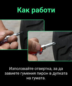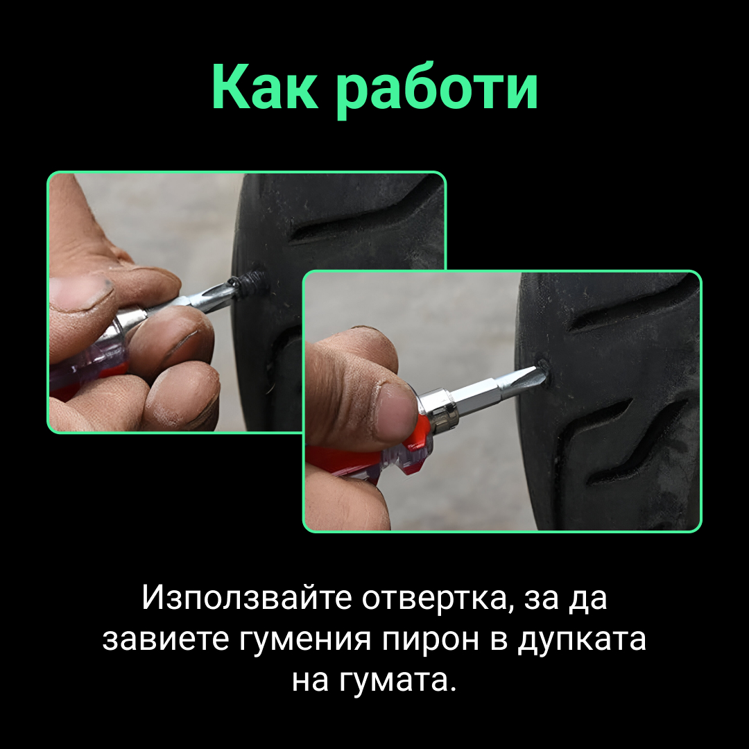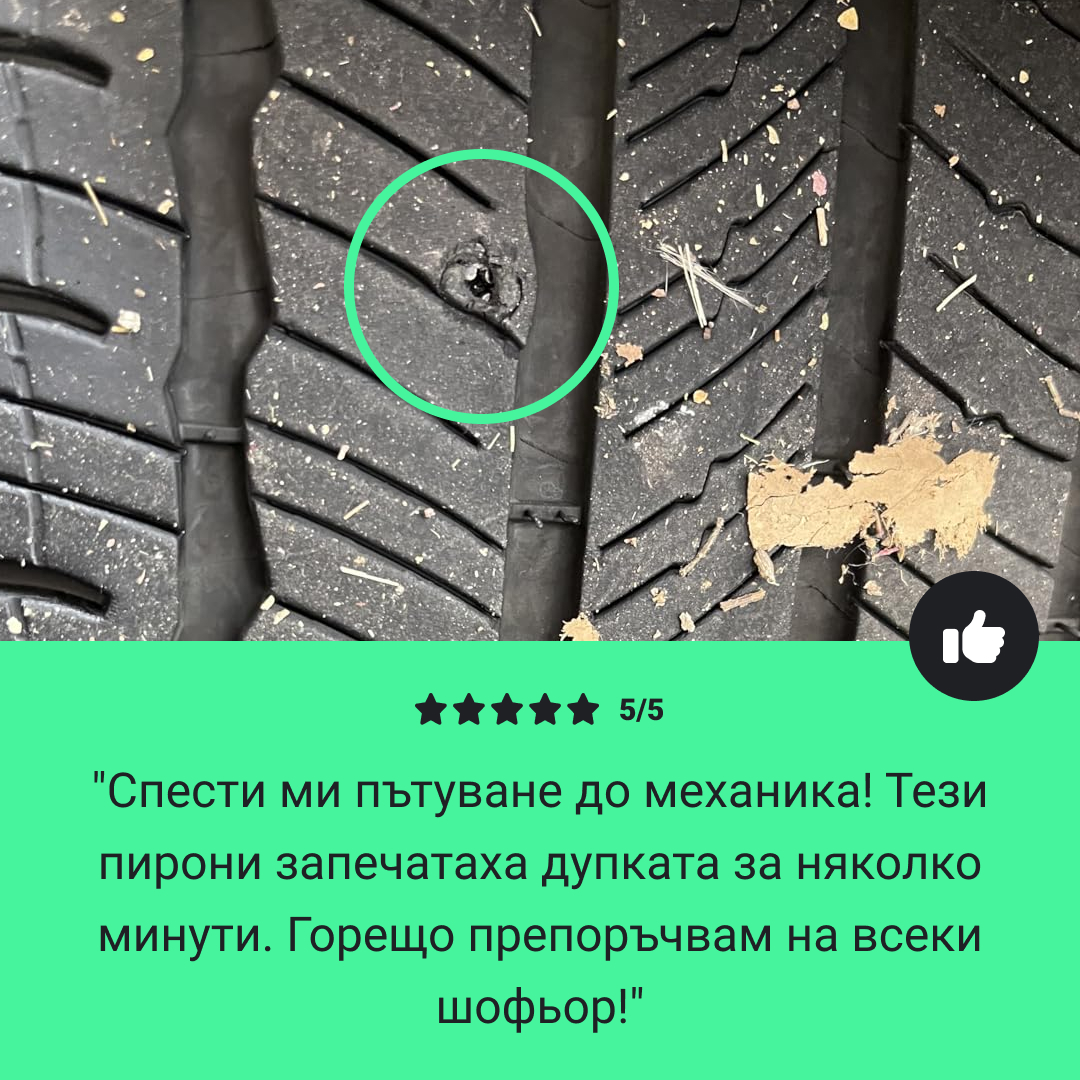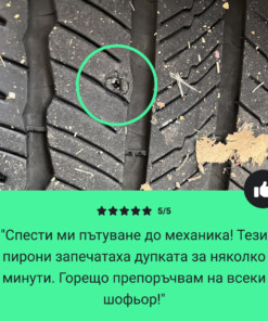 „Трябваше да ремонтирам гумата на скутера си. Тези нокти са невероятни! Те перфектно запечатаха гумата и аз карам всеки ден! Определено 5 звезди!“