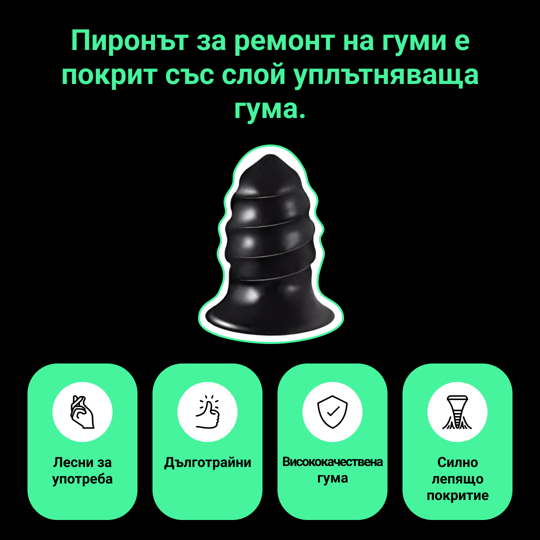„Много лесен за използване. Извадих чавката с клещи и завих ремонтния нокът в дупката. Запечатването задържа въздуха повече от 10 дни без проблеми. Много съм доволен от този продукт!“