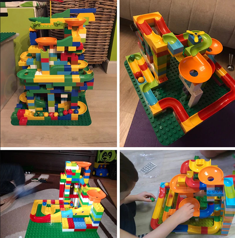 • Децата ще могат да сглобяват различни писти, използвайки въображението си, и ще гледат как топката минава през веригата