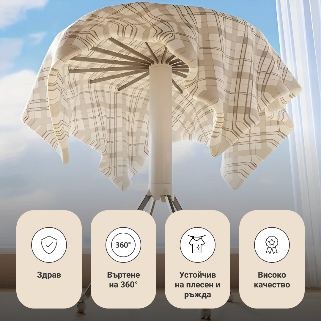 • Въртене на 360° – Лесно завъртете сушилника за равномерно сушене.