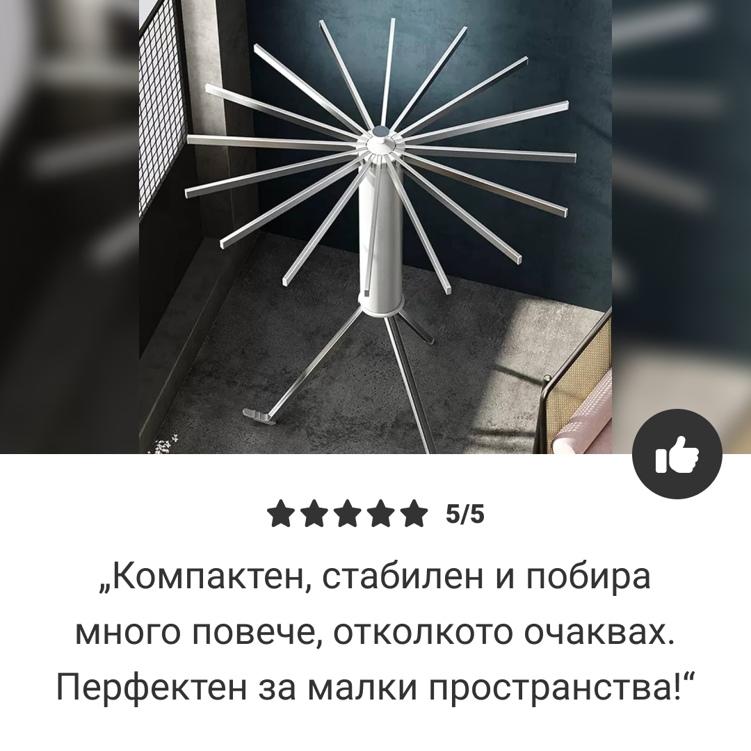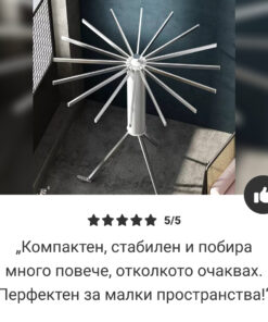 Обожавам тази сушилня за дрехи! Побира повече дрехи от очакваното и се прибира лесно. Перфектна за малки апартаменти.