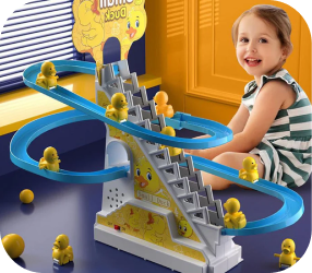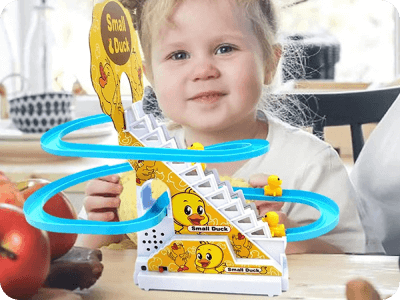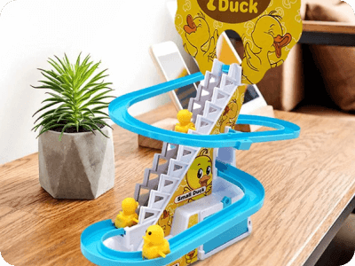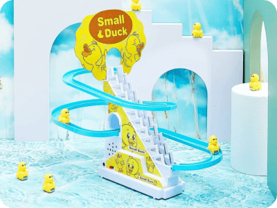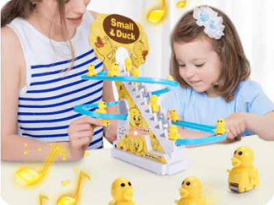 Пързалката с патета активира весели мелодии и енергични блестящи светлини, създавайки пленяваща и забавна атмосфера за децата по време на игра
